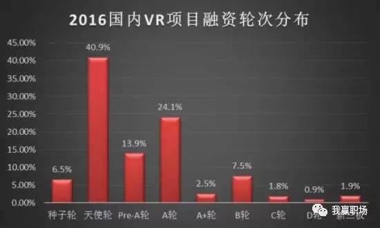 对于创业者来说,VR早已成为大部分人心中的风口。近几年VR行业的创业者倍增。其中跑的比较快的团队和公司,已经开始进入B轮以后,而大部分公司主要集中在A轮以前,其中比例最大的是获得天使轮融资的团队或公司,占比达到40.9%。不难发现,国内的VR企业们尚处在初级阶段,但由于VR本身的市场潜力很受资本看中,所以一直发展较快,预计今年过后,大部分的VR企业将进入B轮。