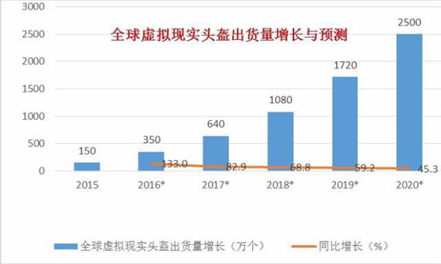全球虚拟现实头盔出货量增长与预测数据来源:Business Intlligence
