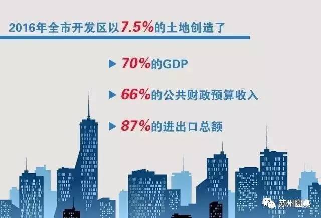 具体到苏州,2016年,全市开发区以7.5%的土地创造了苏州70%的GDP、66%的公共财政预算收入和87%的进出口总额。