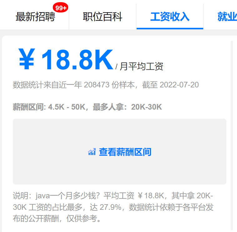 所有入行Java的人都知道Java程序员薪资高、加薪快、发展好。事实上的确如此。这也导致了大量外行人涌入IT行业,于是慢慢又有了另一种说法:Java市场已经饱和,大家不要再学Java了,反正学完后找不到工作还得转行送外卖。