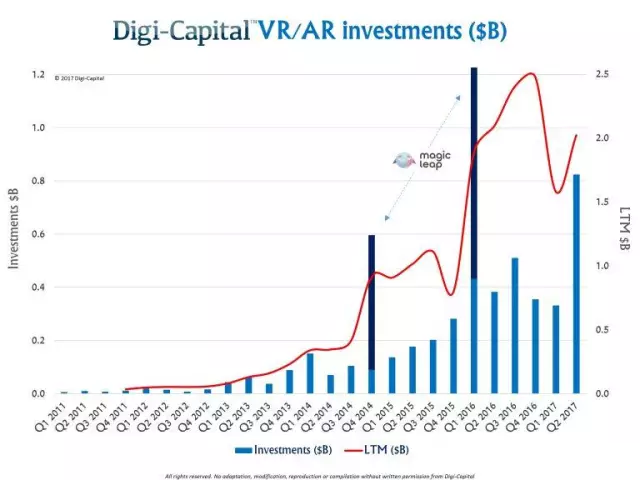 近日,AR-VR咨询公司Digi-Capital公布,2017年第二季度,AR和VR的投资达到了8亿多美元。