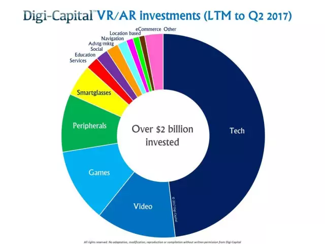但这些投资并不只是落在游戏领域。Digi-Capital创始人兼总经理Tim Merel列出了AR/VR投资最多的五个领域:技术、视频、游戏、外设和智能手机。