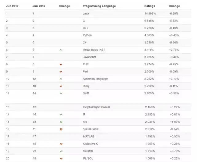 据今年6月发布的TIOBE各语言排行榜显示,Java依然稳居榜首。Java作为编程语言里的一哥,毋庸置疑。
