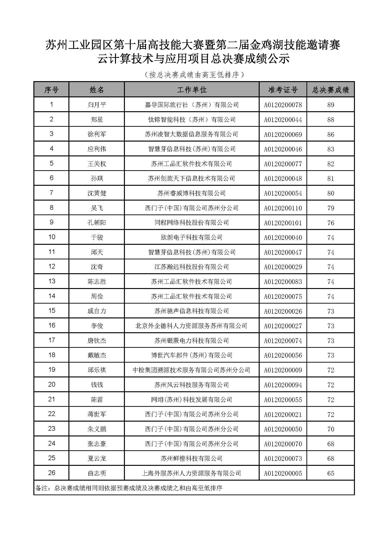 根据第十届高技能大赛暨第二届金鸡湖技能邀请赛各项目竞赛规程规定,目前云计算技术与应用项目已经完成整体的竞赛工作,项目裁判组已完成了评分、核分和成绩统计工作,现将总决赛选手竞赛成绩予以公示。如需查询赛项具体得分,可联系项目负责人。
