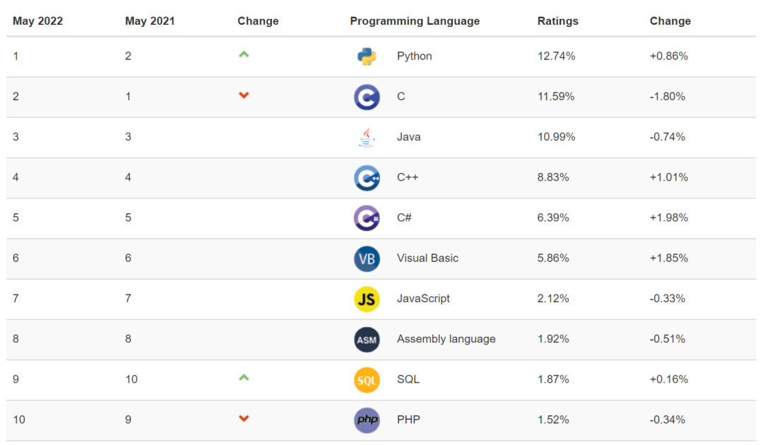 5月 TIOBE 编程语言排行榜新鲜出炉,和4月 TIOBE 编程排行榜相比,本月 TOP10 的编程语言变化不大,其中 Python语言排名第一,随后分别是C语言和Java。不知道大家看完有何感想,小编看完只有一个感受,虽然时不时在网上会听到“唱衰”Java的言论,但每次Java都没让人失望,长期霸占编程语言排行榜前几名,依旧宝刀不老!